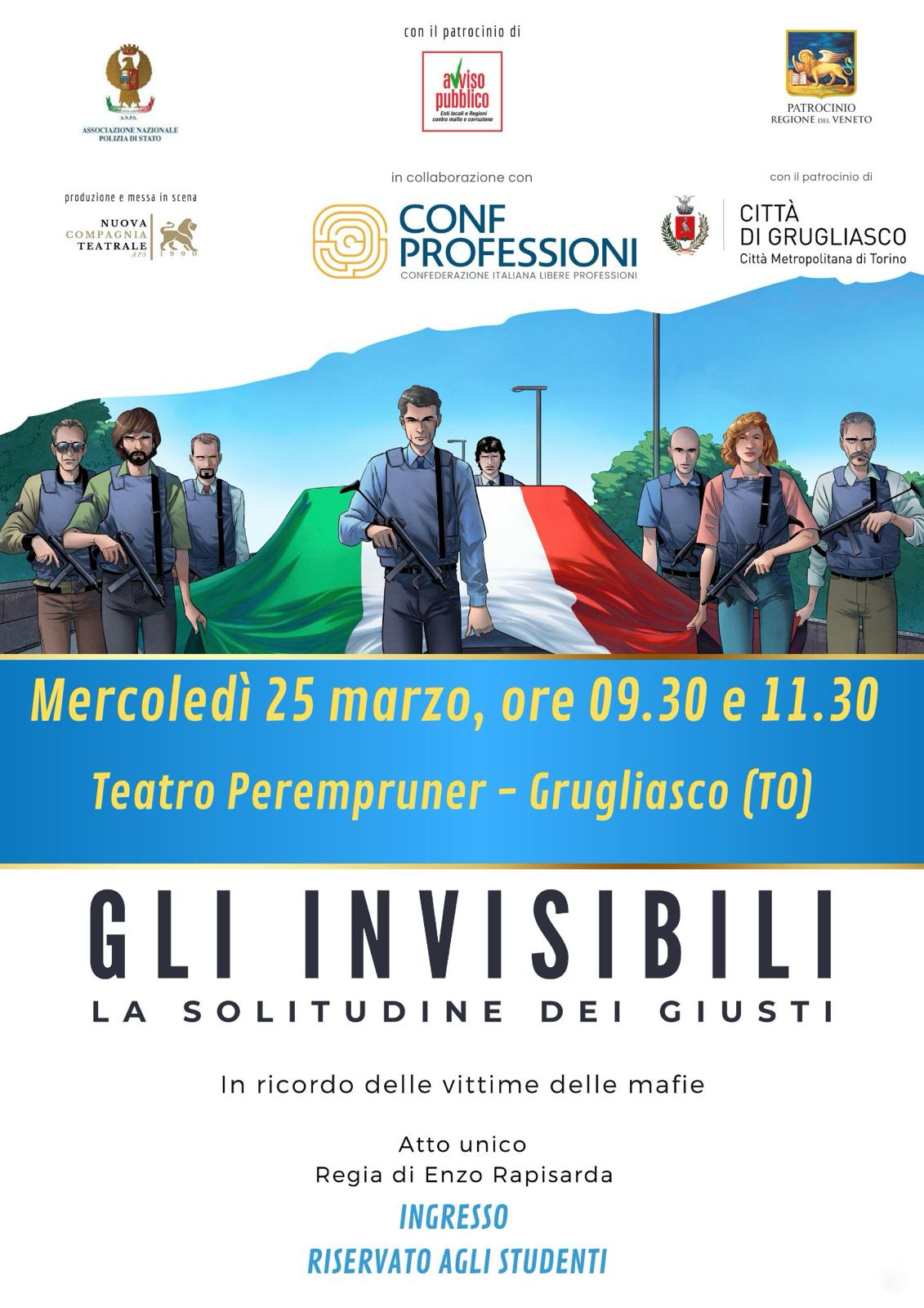 Ancora una volta, coinvolgiamo gli studenti e la cittadinanza in un percorso di riflessione che si estende, oltre il corteo del 21 marzo a Torino, ai palcoscenici della nostra città, con lo spettacolo “Gli invisibili – La solitudine dei giusti”, in due appuntamenti.